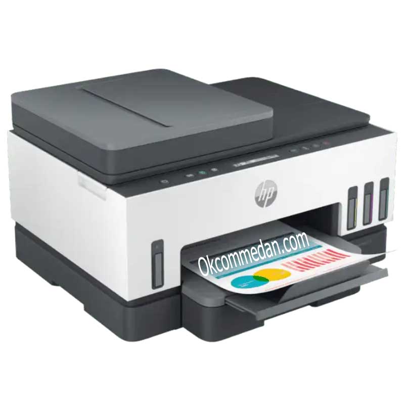 HP Smart Tank 750 adalah Printer model ink tank yang lengkap , memiliki fungsi Print, Scan, Copy , Bisa Mencetak duplex dan tersedia Automatic Document Feeder ( ADF ) , serta terdapat interface Wireless dan Lan