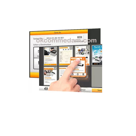 Anda dapat memvalidasi gambar yang telah discan dalam mode thumbnail. Dapat juga meninjau masing-masing halaman dalam mode halaman penuh untuk memotong, memutar, / menyusun halaman, lalu simpan ke 9 pilihan penyimpanan : USB drive, folder jaringan, mobile, alamat email, / cloud (Dropbox, Google Drive, FTP).