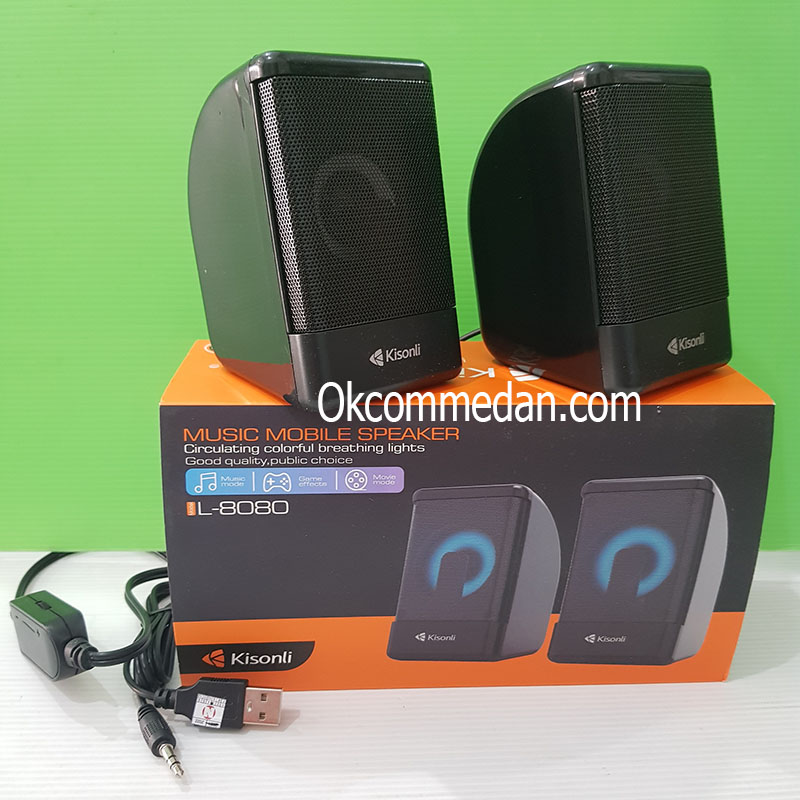 Kisonli L-8080 adalah Speaker Multimedia 2.0 dan memiliki lampu berwarna yang bersirkulasi dan menggunakan interface USB 2.0 untuk power serta Jack Audio 3,5 mm untuk suaranya.