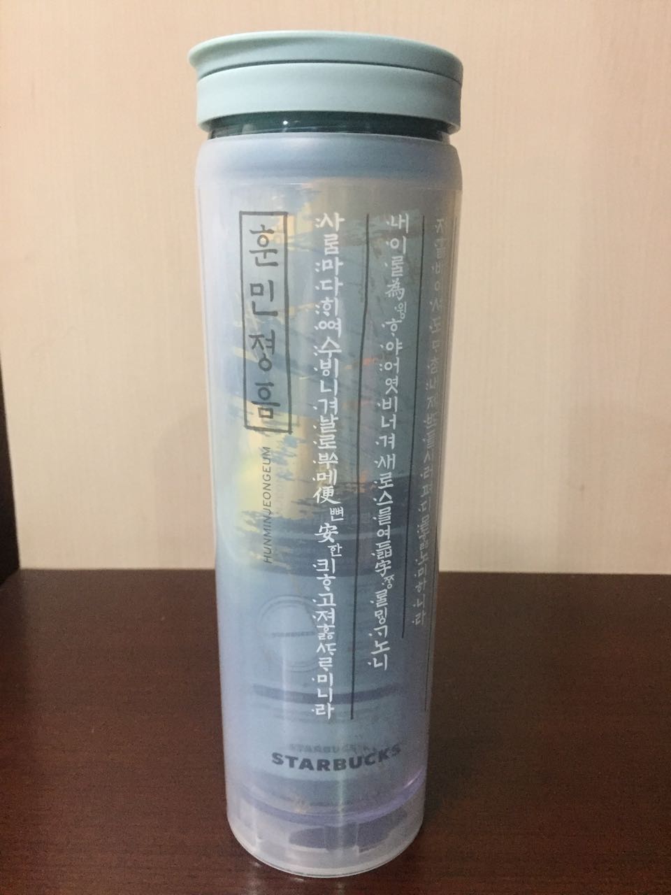 Starbucks tumbler ini merupakan starbucks tumbler dengan 1 botol transparan warna biru dan 1 case warna putih dengan tulisan korea. Tumbler ini memiliki kapasitas 473ml. Tumbler ini merupakan tumbler limited editon, dan bisa digunakan setiap tanggal 22.